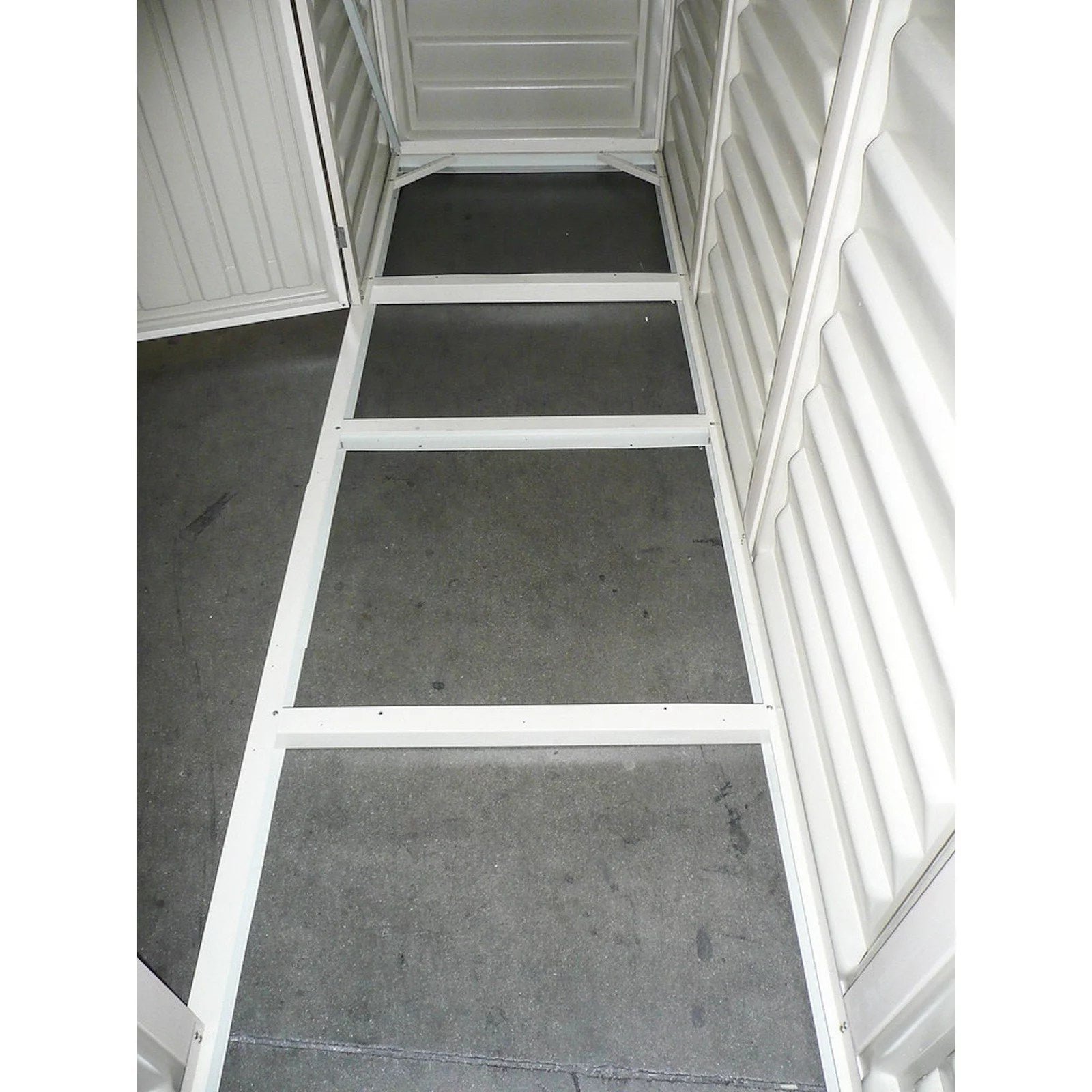 Part of the Woodbridge series, DuraMax Sheds now offers a new 10.5′ x 2.75′ vinyl shed for smaller storage needs. The new shed gives you the ultimate solution for storage in long slim areas! Shopping for a new shed can be tedious; there is no better value out there if you desire a real vinyl shed! This massive shed offers tall walk-in, extra wide double doors. Built with heavy duty wall columns with steel reinforcements to add superior strength, strong enough to hang garden tools on or build shelves with ease. This extra long shed provides a unique solution for odd spaces.