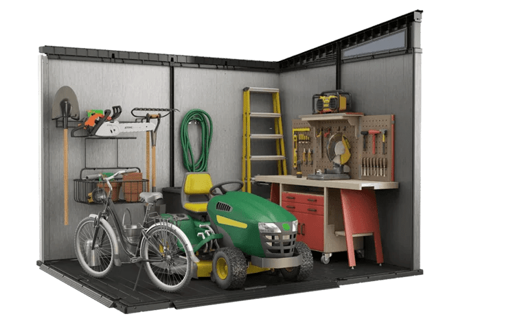Do you love a modern look when it comes to your yard? Then you’ll love the Artisan 9×7 Shed. It’s got a storage capacity of 390.2 cubic feet, and it has a beautiful modern look and feel. The shed is extremely durable, and it also won’t peel, rot, or rust over time. It has a light and airy interior that features windows, ventilation, and even customizable walls. The walls can be painted or drilled into so you can have a shed that meets your needs perfectly!