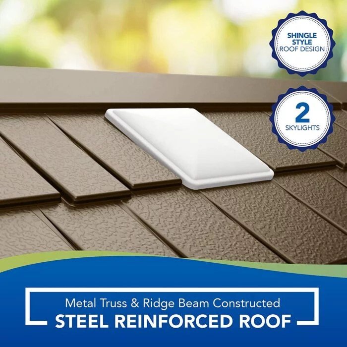• OUTDOOR STORAGE: A beautiful shed to store and protect your power equipment, long handled tools, ladders, and bikes
